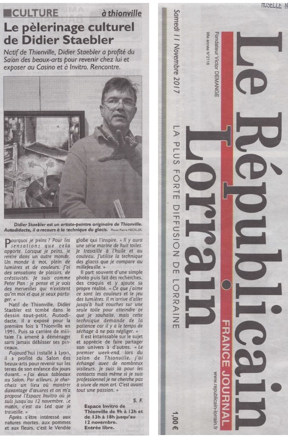 - Du 15 au 17 septembre 2023 / 7éme Salon international des beaux-arts de Lorraine, Thionville (57) ;