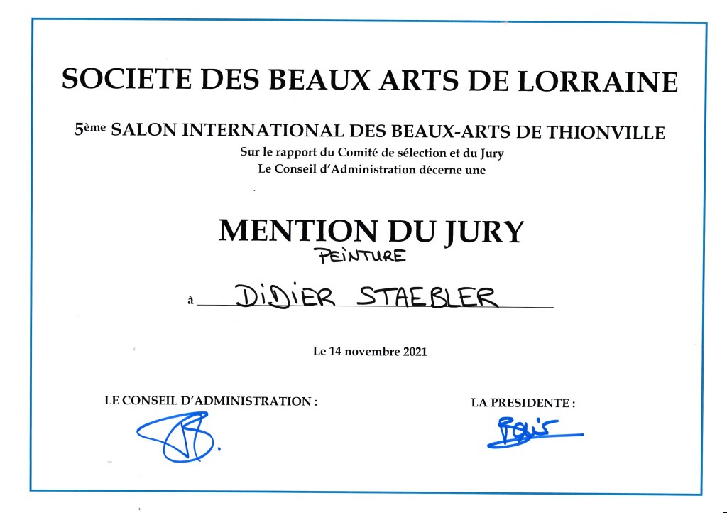 2021 Le prix du jury au Salon International des Beaux-Arts de Lorraine