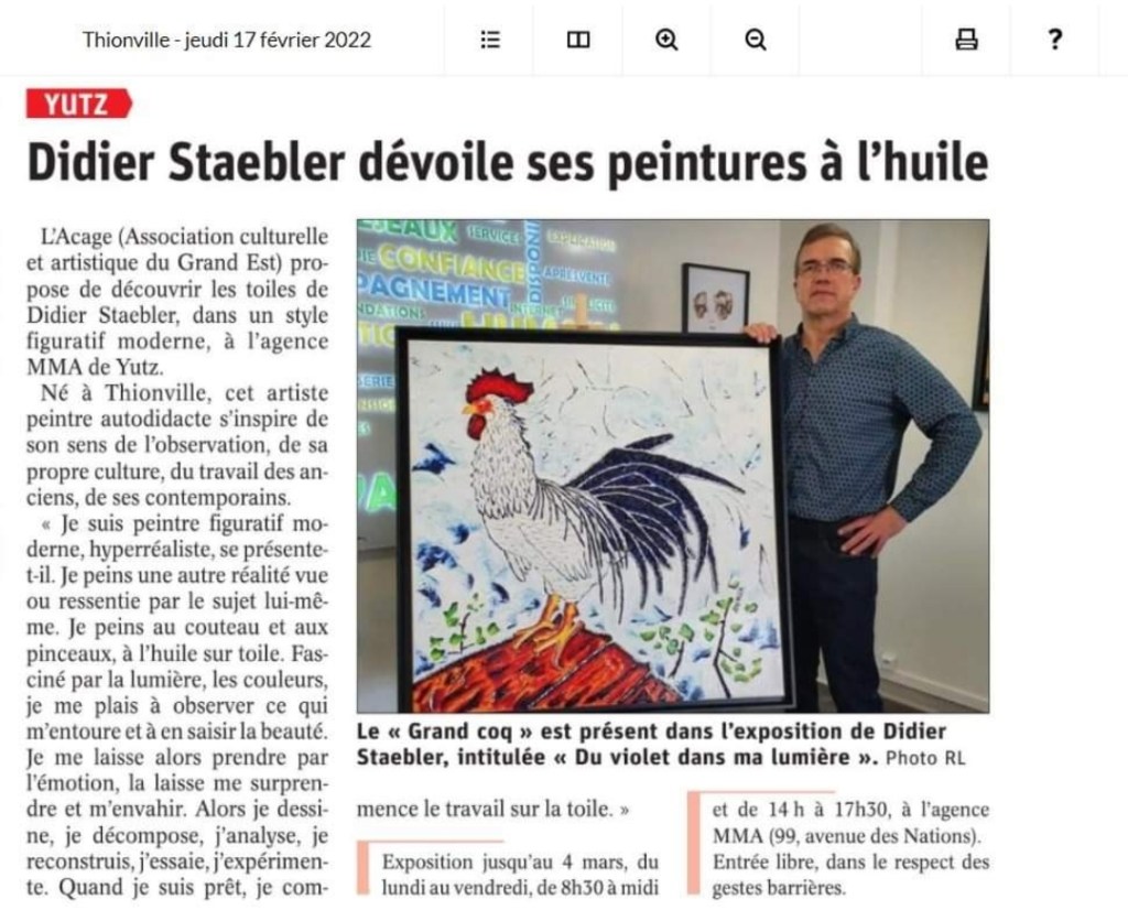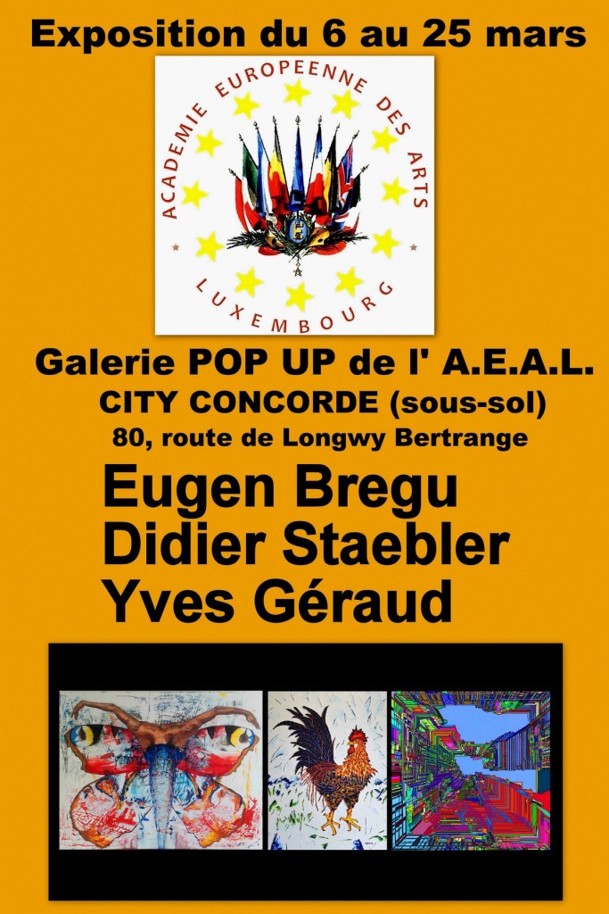 - Du 06 au 26 mars à la galerie POP UP à Bertrange (Lux) .