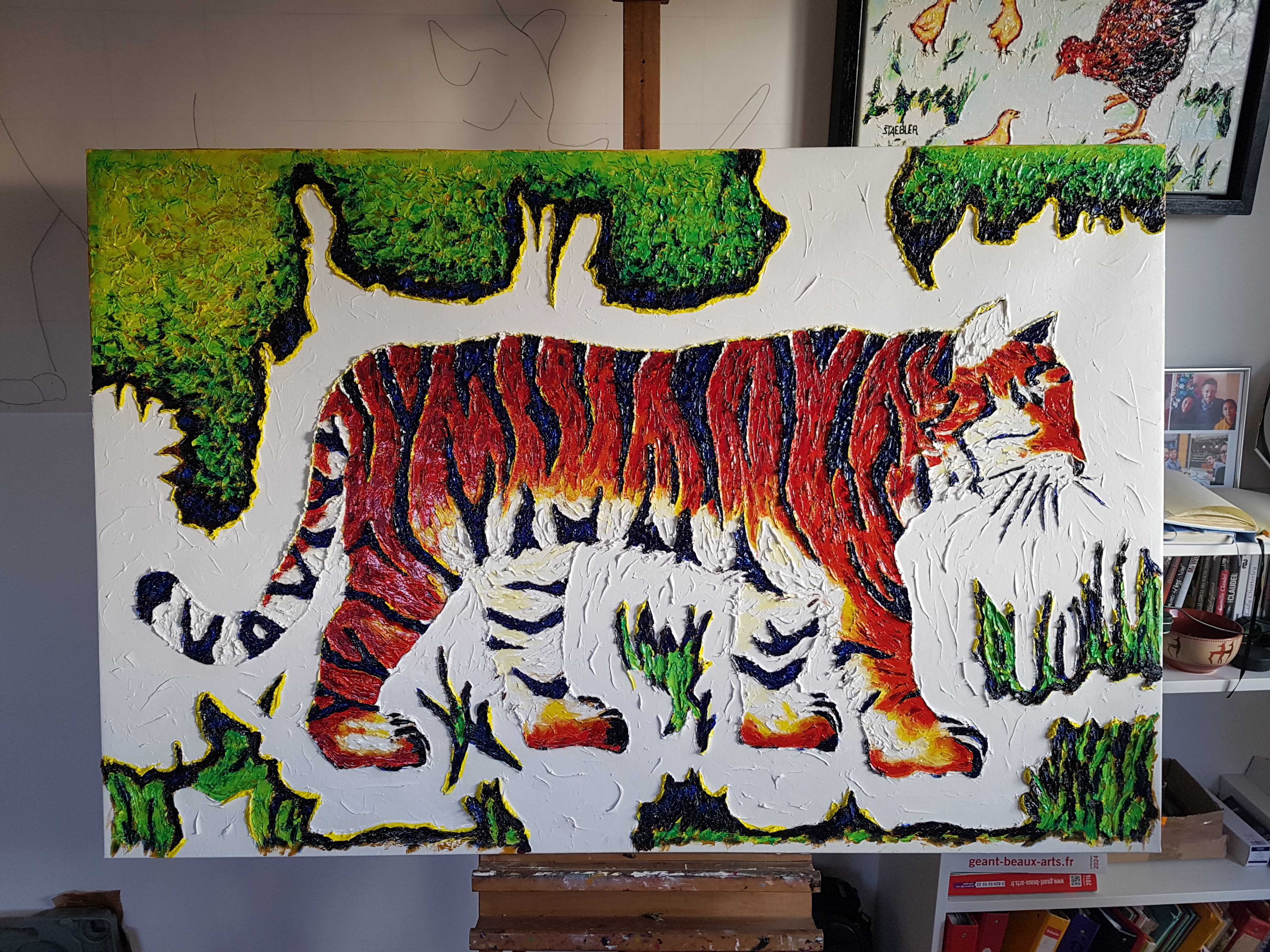 Vous êtes invité au vernissage qui aura lieu le mercredi 13 août 2025 à 17h. Je présenterai deux œuvres récentes : Le tigre et Le crocodile.