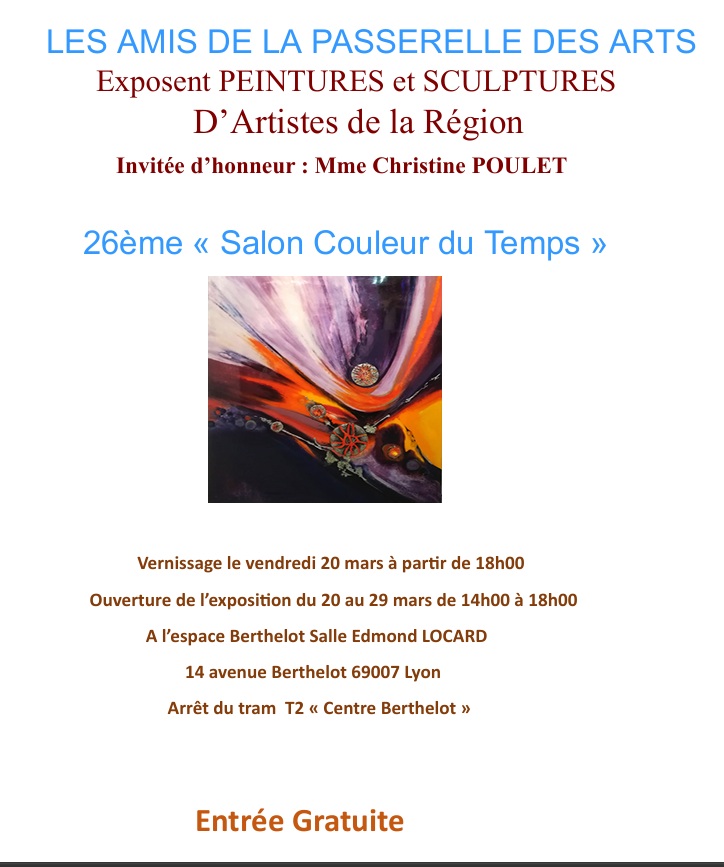Du 19 au 29 mars 2026 – Exposition Les amis de la Passerelle des Arts – Lyon 7éme – Espace Berthelot.